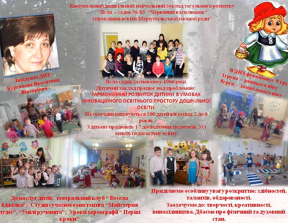 Дошкільний навчальний заклад № 83 «Червоний капелюшок» Маріупольської міської радизасновано в 1966 році.